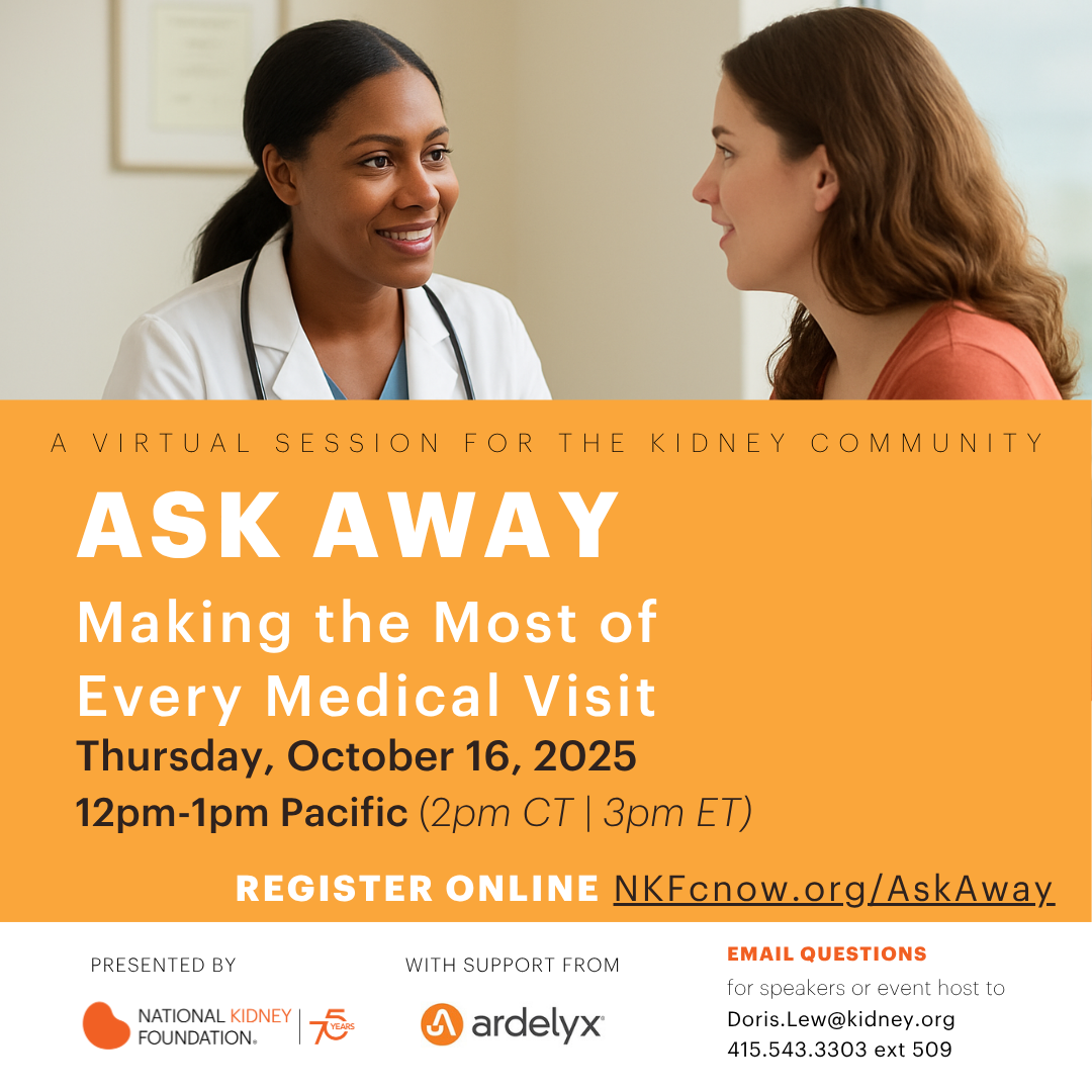 Based in Tulare County, the Valley Renal Support Group meets virtually and in-person the second Wednesday of each month from 7:00-8:00pm PT. All are welcome.